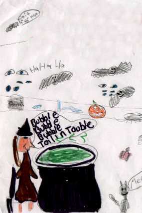 The Garage - By Anna-Marie The room is full of fright Witches, bats and cats All are too fat People hanging on the wall But they are much too tall Eyes, eyes everywhere As you look here and there Spiders crawling on the floor As you open the door Please help me get out of here As I laugh with a joyful cheer Finally I got out of there See you soon when I grow more hair Never go in the garage at night Unless you're ready for a fright |